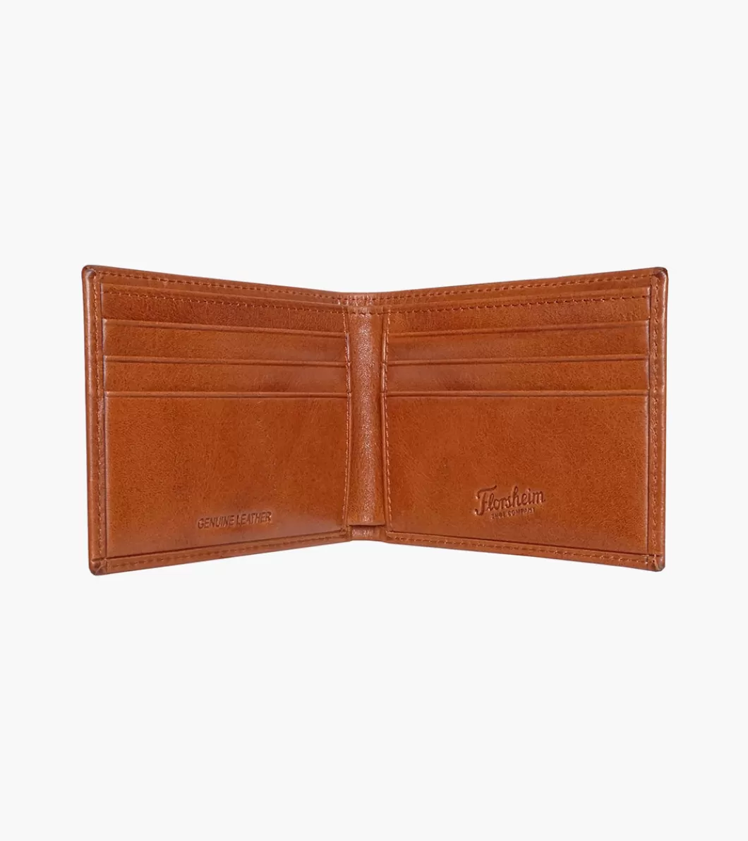 This vegetable tanned genuine leather wallet features a stylish Florsheim logo and plenty of interior room with a compartment for bills and slots for eight cards.