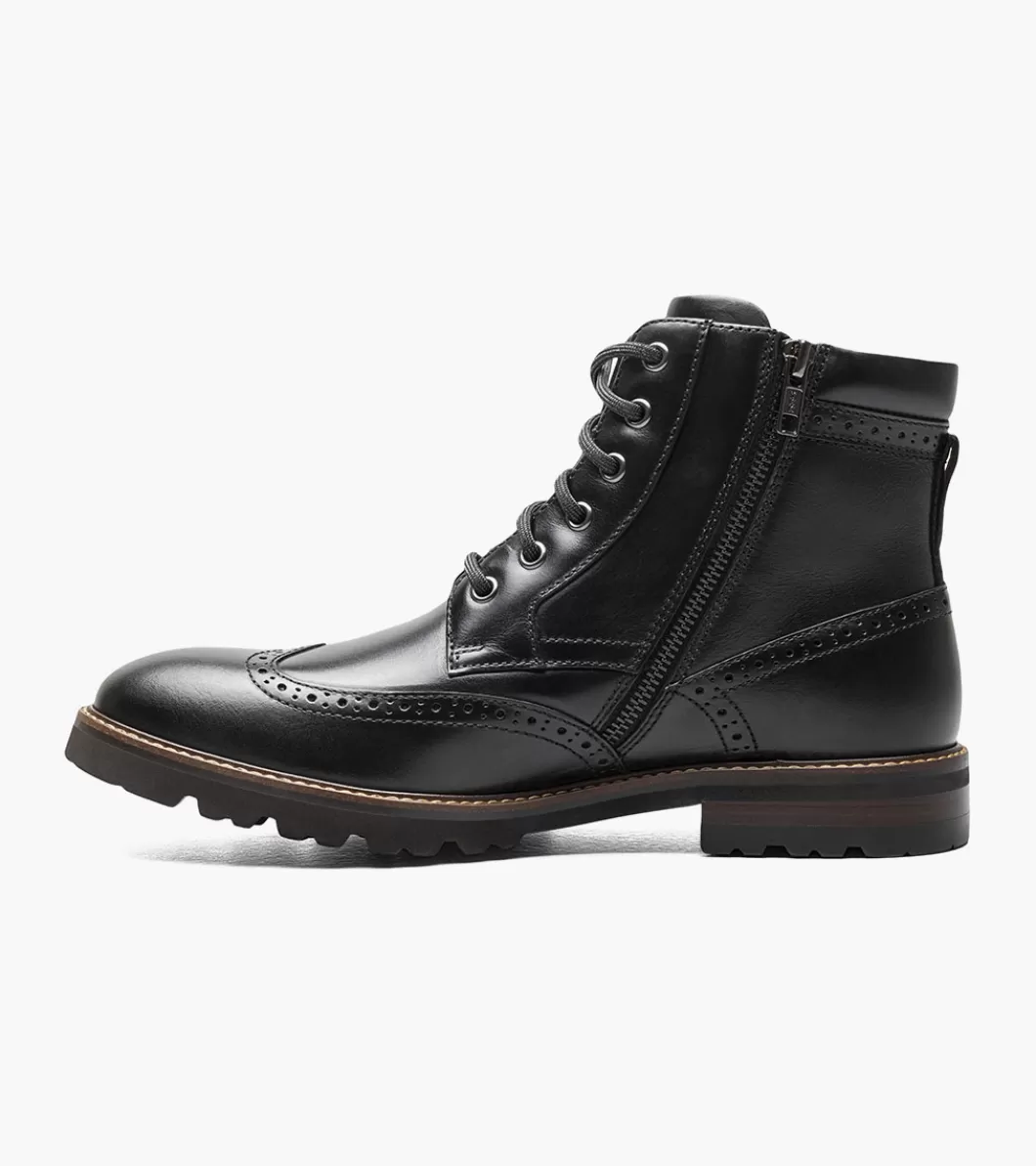 The Florsheim Renegade Wingtip Lace Up Boot has a modern appeal thanks to its mixed material upper and a striking lug sole. This is a versatile style that can easily be dressed up or down.