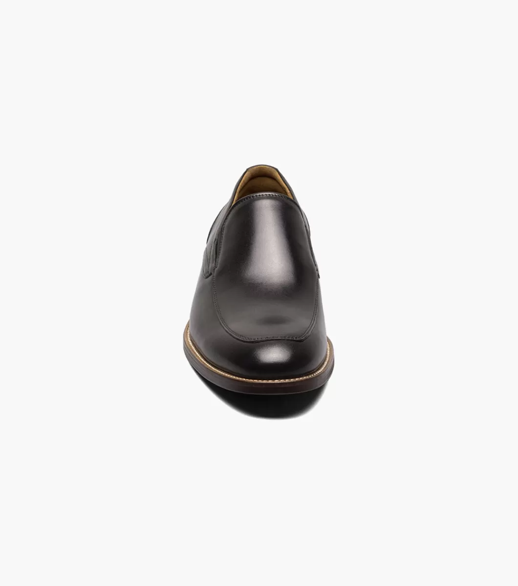 The versatile Florsheim Rucci Moc Toe Slip On features a smooth leather vamp, stacked heel, and a modern profile. For all-day comfort it also has soft Suedetec linings, a fully cushioned footbed, and a dual-gore patch opening for a more personalized fit.
