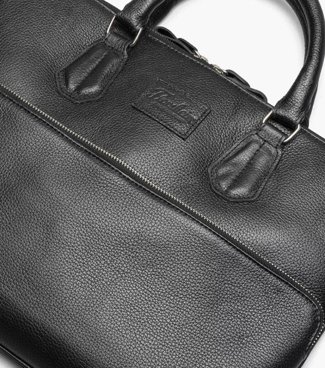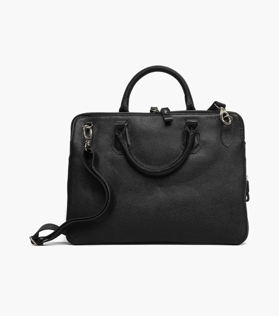 The reduced size of the Alfredo hides a roomy interior with plenty of space for your daily office essentials. Made of rich pebble grain leather, it features eye-catching silver zippers, a removable shoulder strap, and a zippered interior pocket.