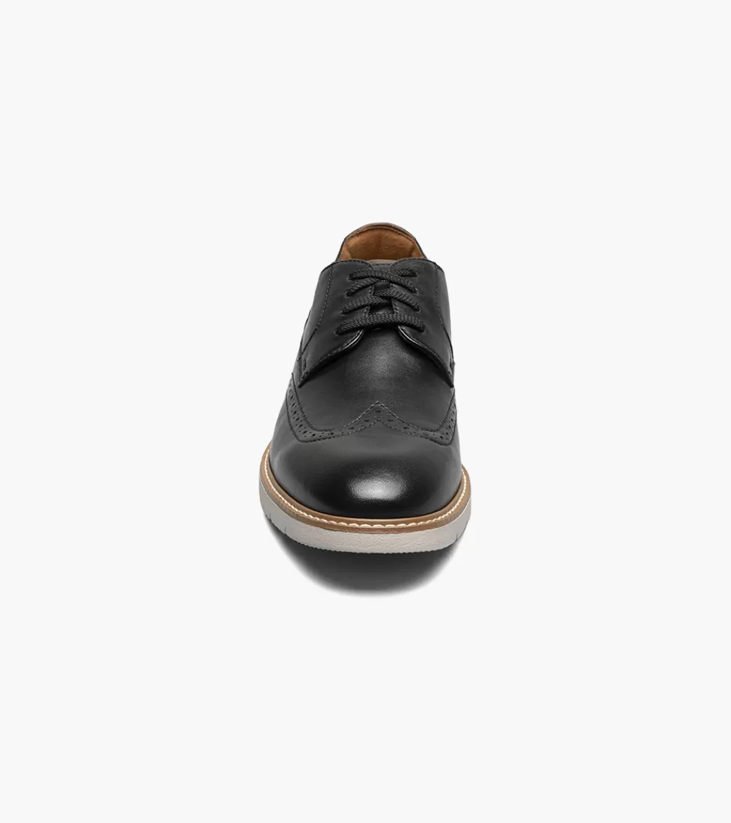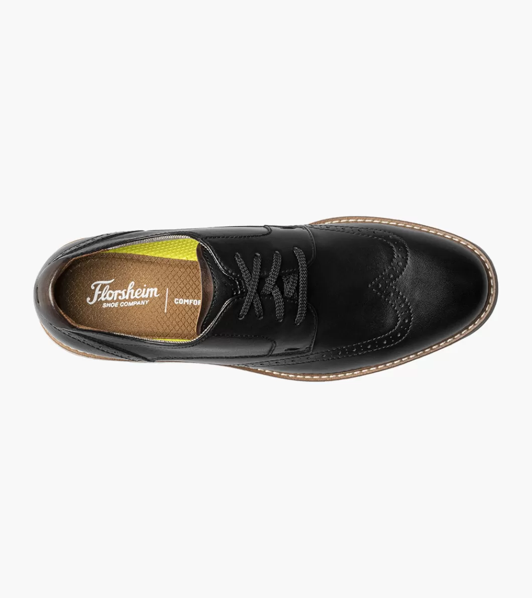 Riding the line between dress and casual, the Florsheim Vibe Wingtip Oxford features a classic style with a cool wedge sole. Worn with chinos or jeans, thanks to its combination of modern style and Flexsole Technology, the Vibe will have you feeling and looking great.