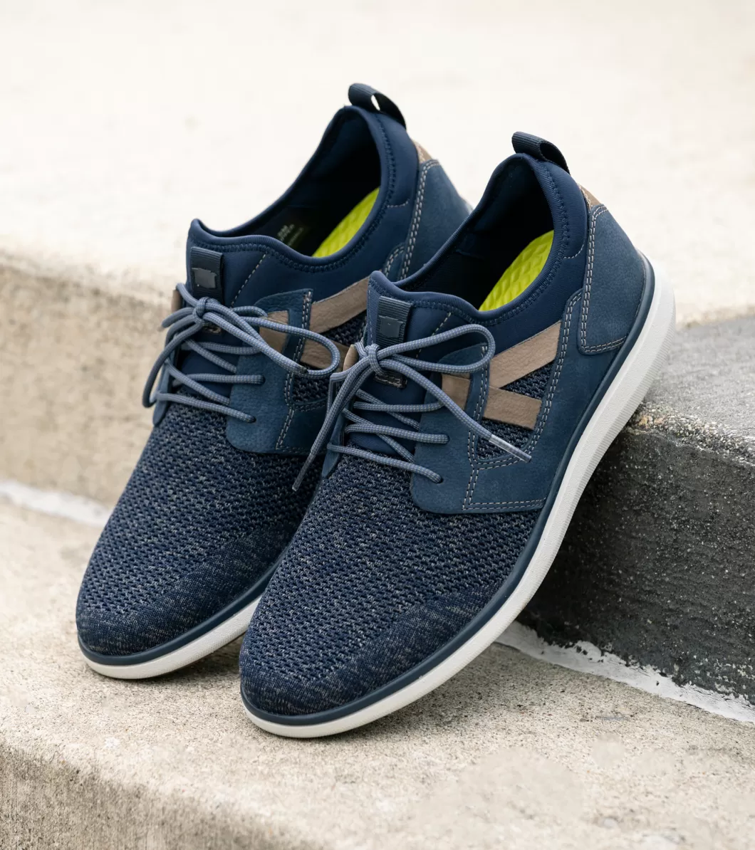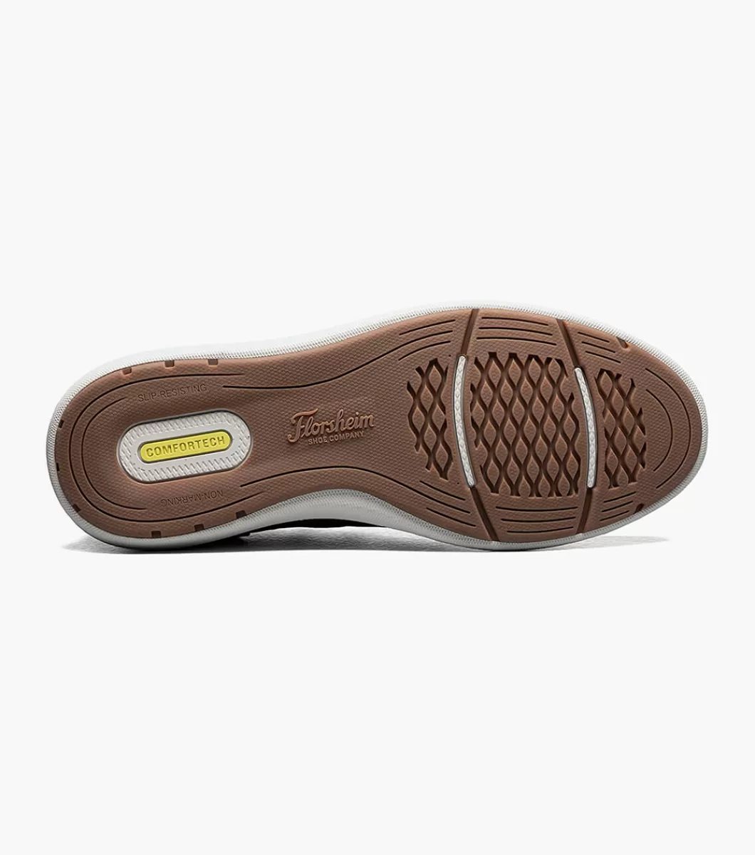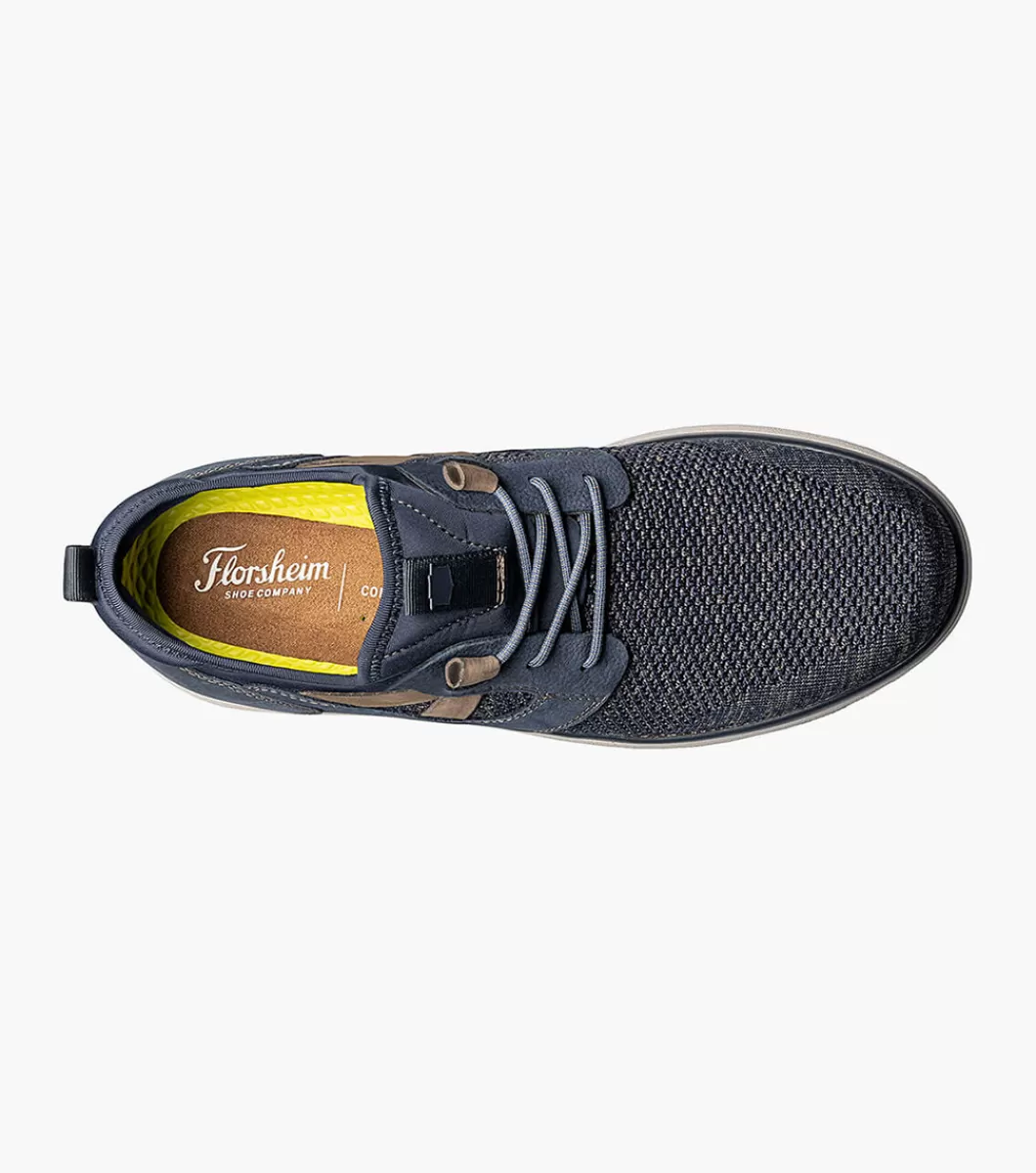 Edgy yet sophisticated, the Florsheim Venture Knit Plain Toe Lace Up Sneaker features a modern mix of materials, colors, and textures. The versatile, casual design is complemented by a contrasting sole and ultra-comfortable Comfortech footbed.
