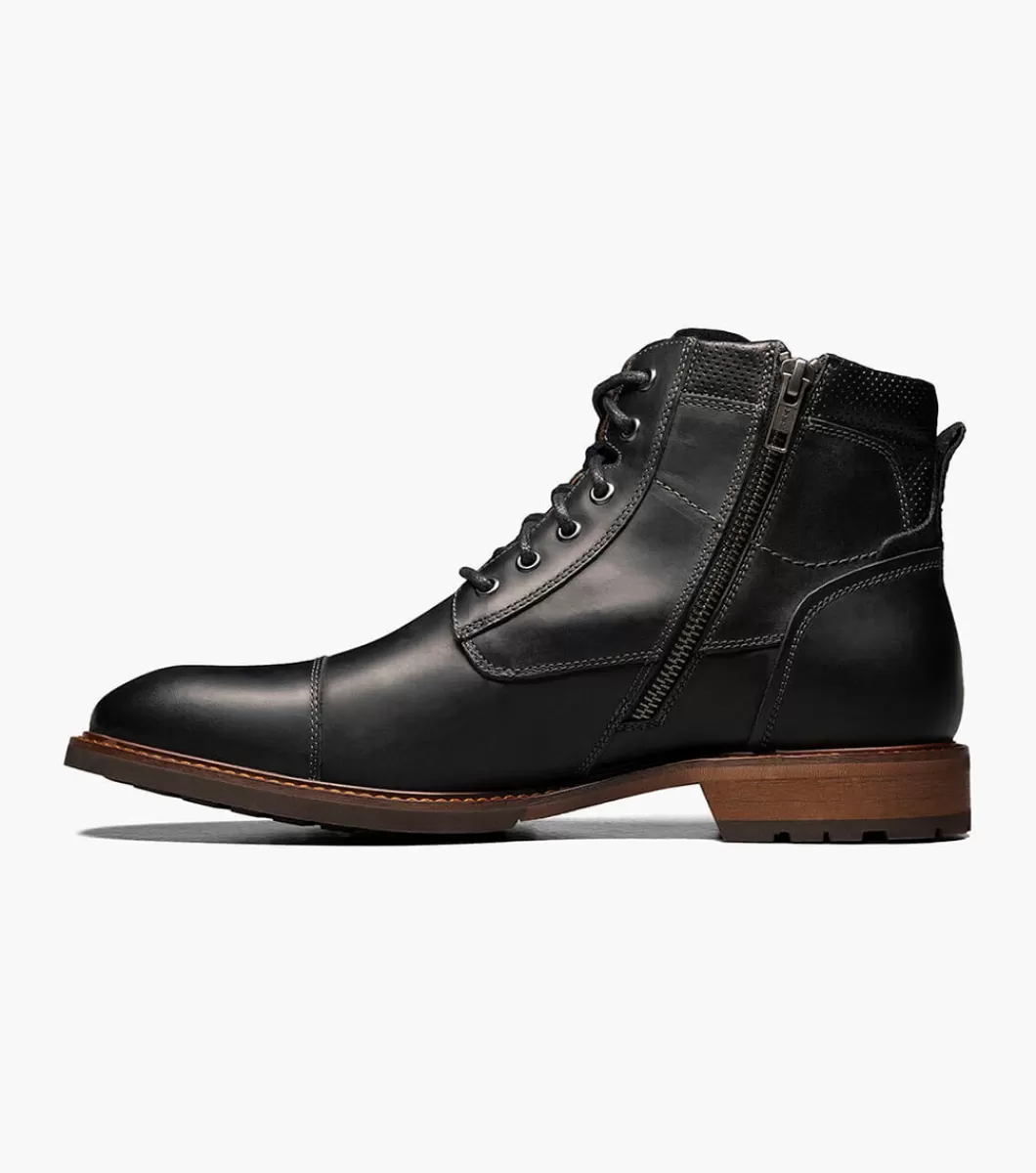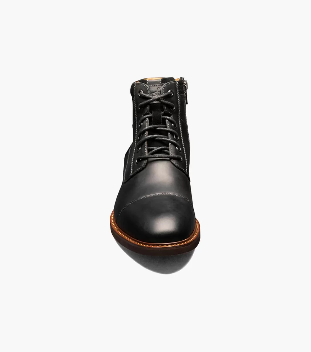 Looking for a boot you can wear to the office and a weekend around town? The Florsheim Lodge Cap Toe Lace Boot is the answer. Its versatile design features a mixed material upper with subtle stitching details and a modern stacked heel. With dress pants or jeans, this boot will spend little time in your closet.