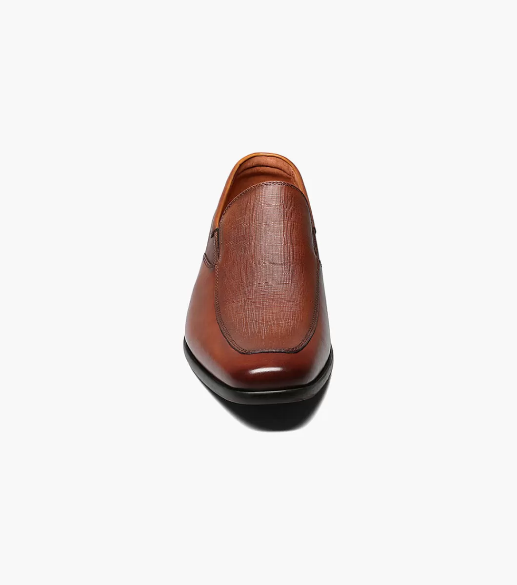 The Florsheim Postino Moc Toe Venetian Slip On features a classic, unadorned vamp made with scratch print leather to give a modern appeal and a unique depth of color. Combined with the stacked heel and modern profile, the Postino is a stand out among venetians.