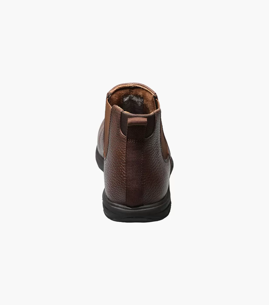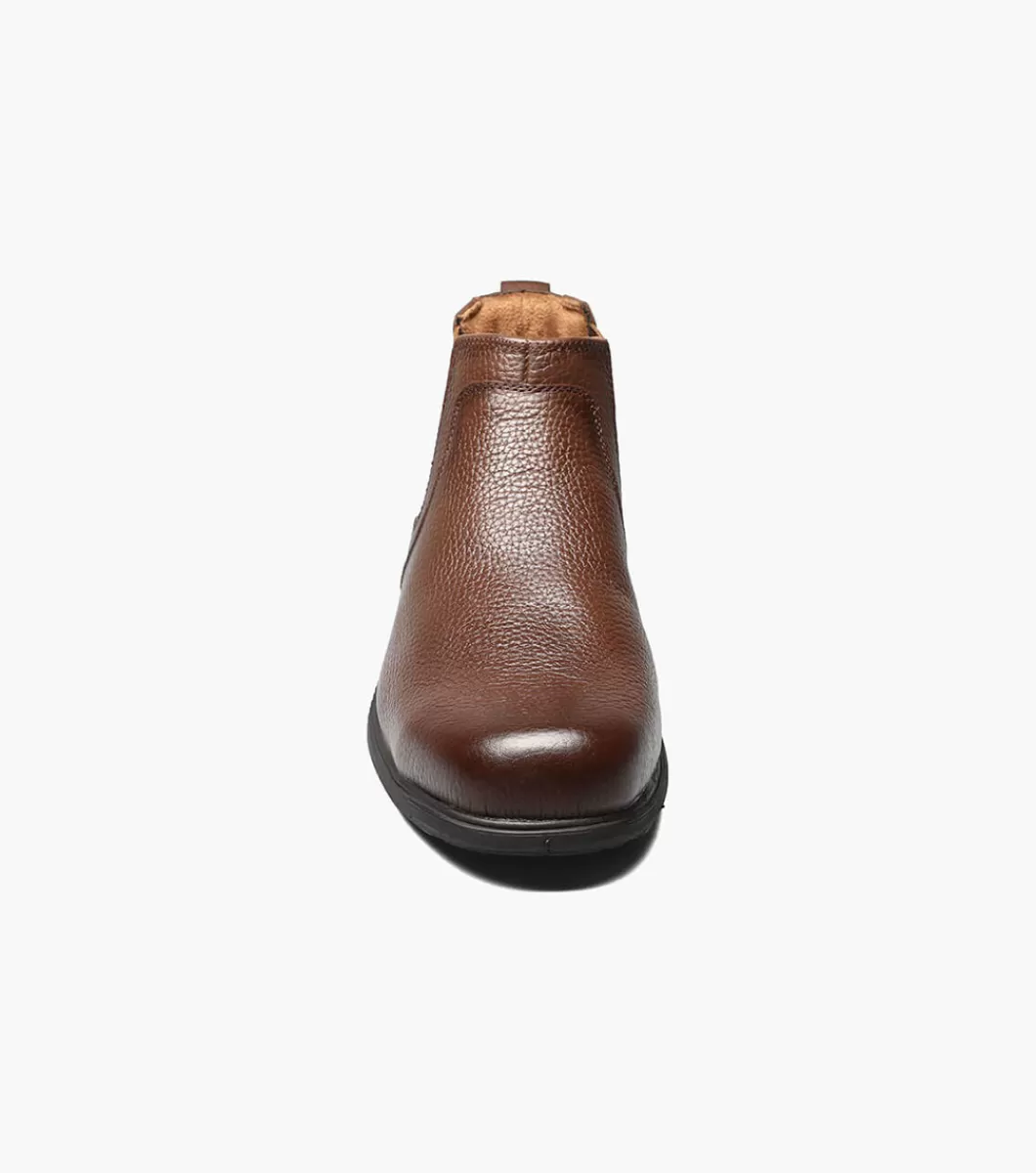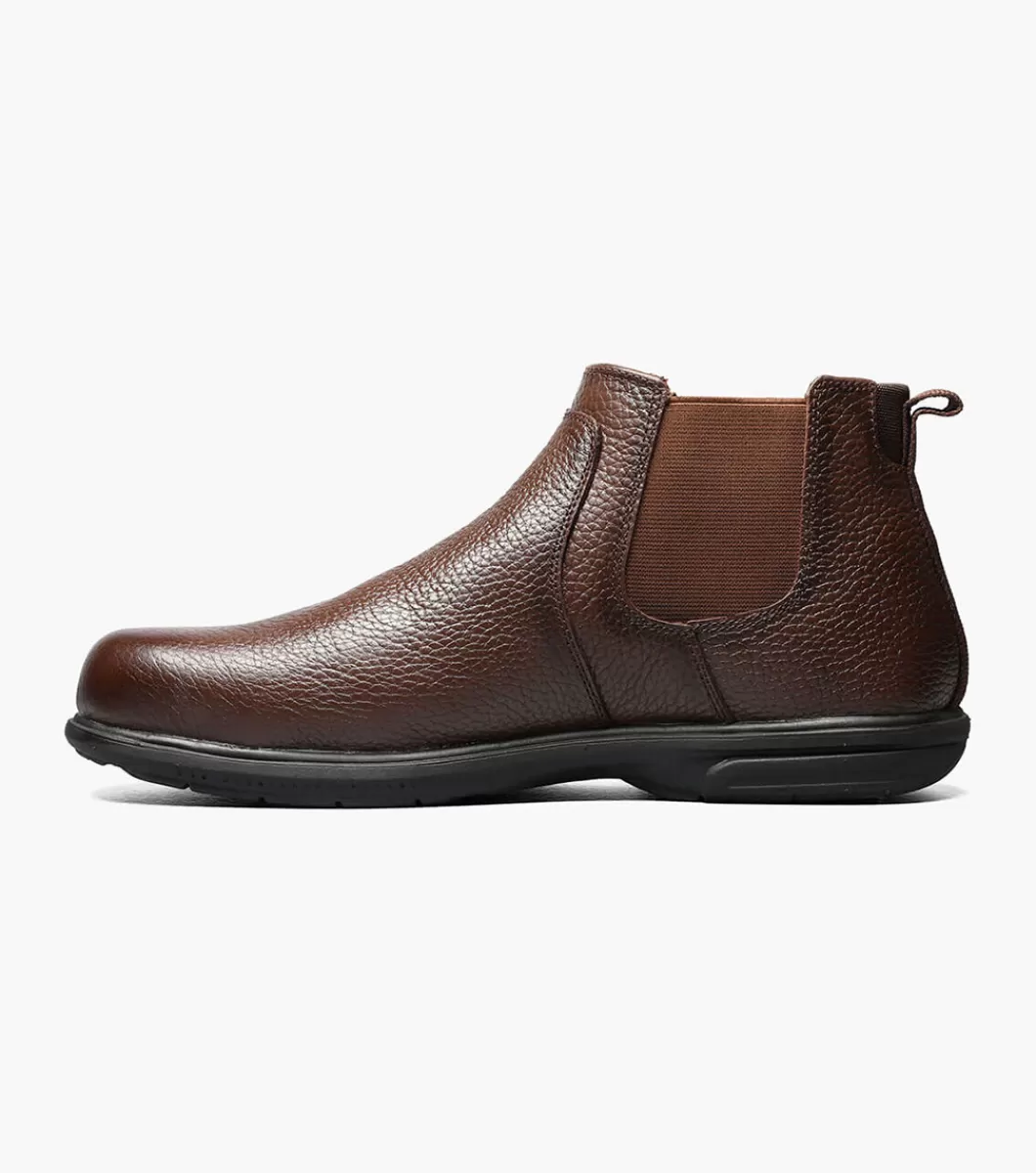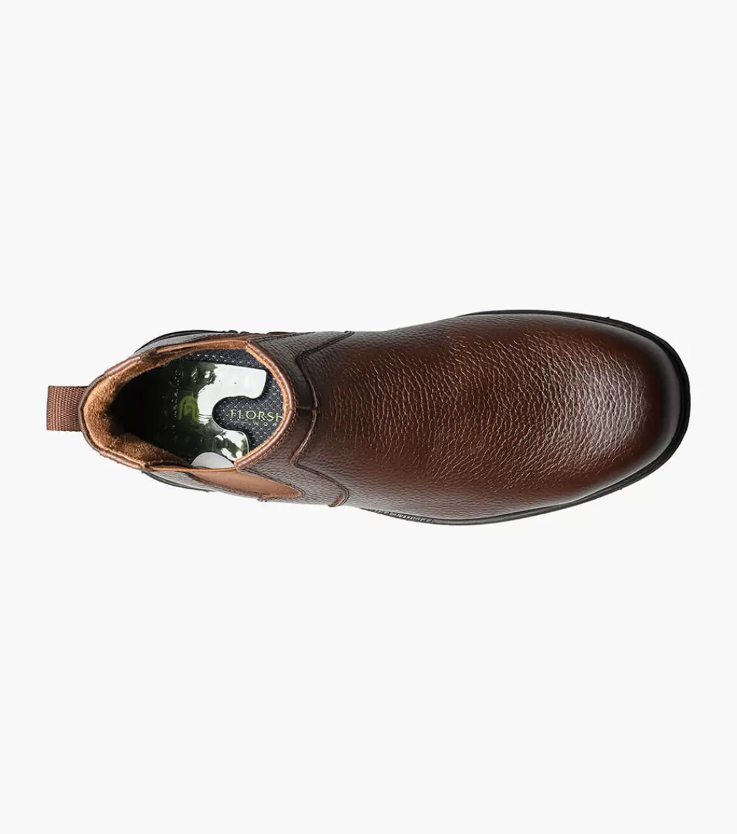 With the Florsheim Loedin Steel Toe Plain Toe Gore Boot we’ve taken an iconic style and turned it into a tough work boot. This classic chelsea boot features a sturdy steel toe, genuine leather upper, and a modern, slip-resistant rubber sole. For all-day comfort it also has mesh linings and a Comfort Gel heel pod.